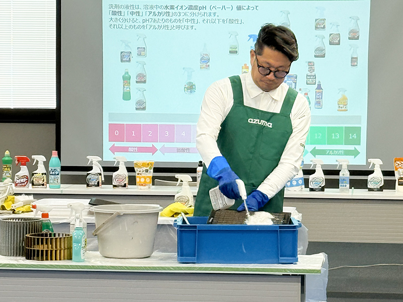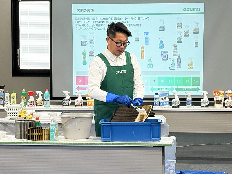 当日は、手順を細かく説明するよりも、汚れの見方や洗剤・道具の選び方、なぜその作業が必要なのかといった考え方を中心に進めました。